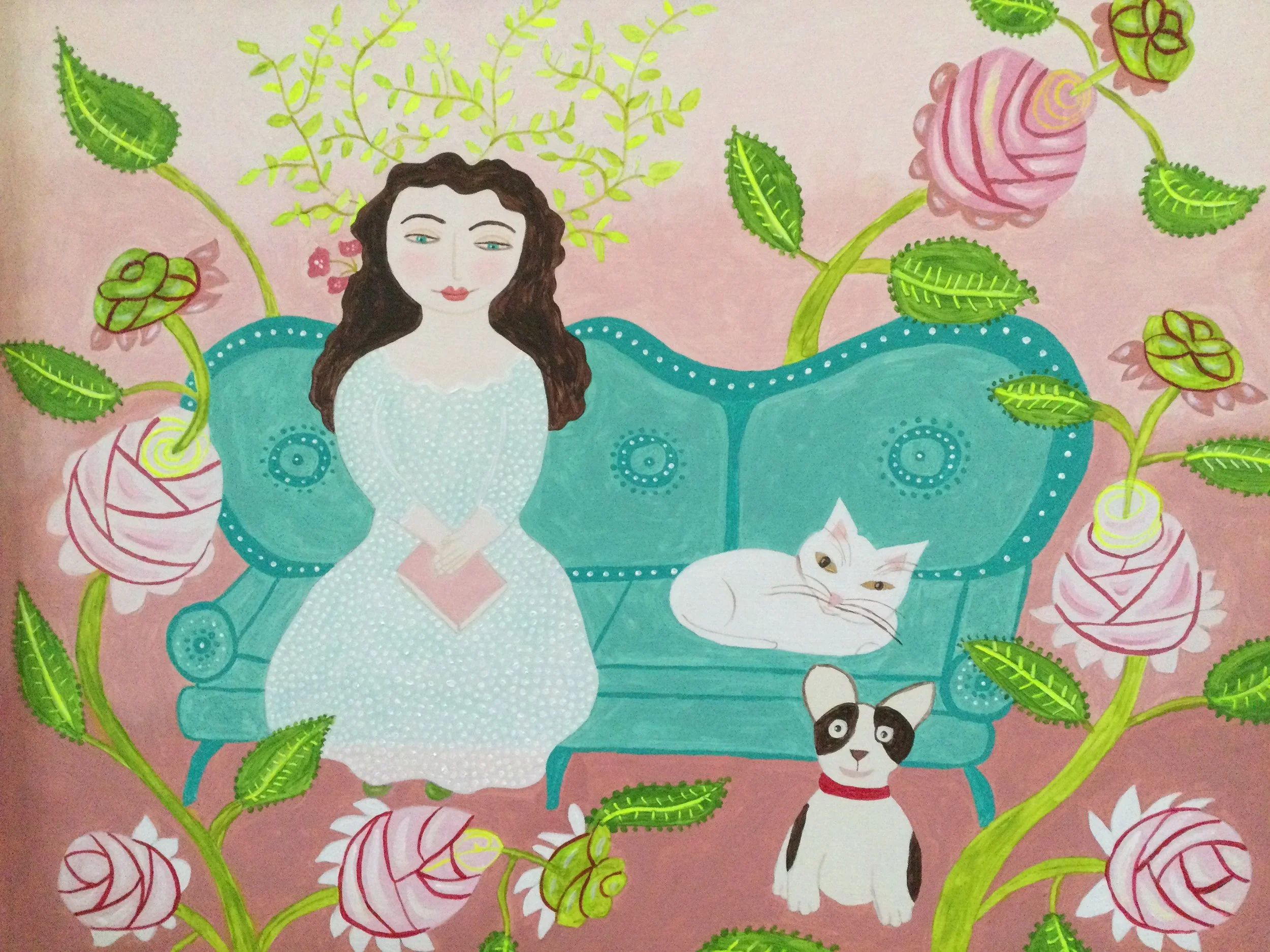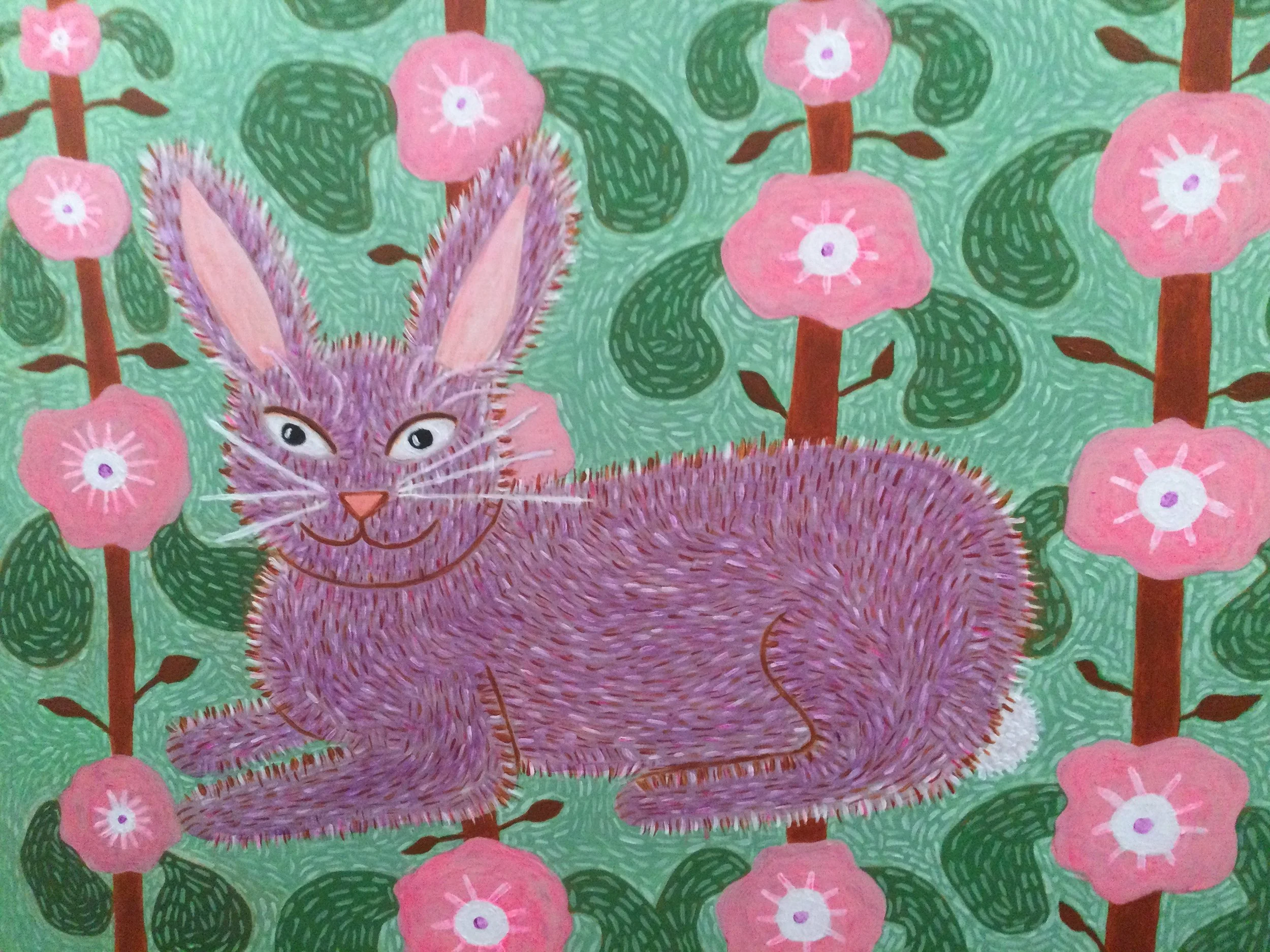 Pamela Smith is a self taught painter and papier-mâché sculptor based in Bristol, Vermont. Her work is primarily portraiture of women and their relations; children, men and animals accompany the protagonists painted amidst vibrant colorful backgrounds. Five of her Madonnas, life size papier-mâché sculptures, are part of the permanent collection at the American Visionary Art Museum.